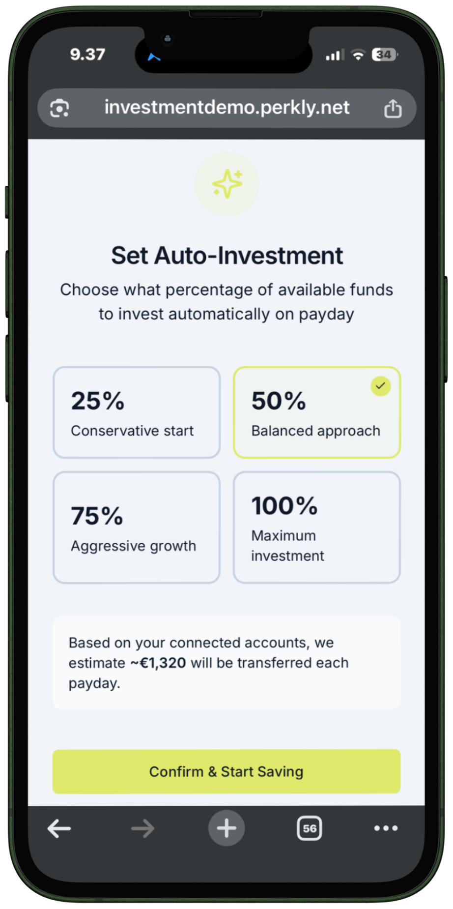 Perkly reduces this stress by turning everyday spending behavior and idle balances into predictable, habit-based investment flows. In doing so, we help people build wealth, enable sustainable growth for banks and investment firms, and channel capital toward a more resilient and sustainable future.